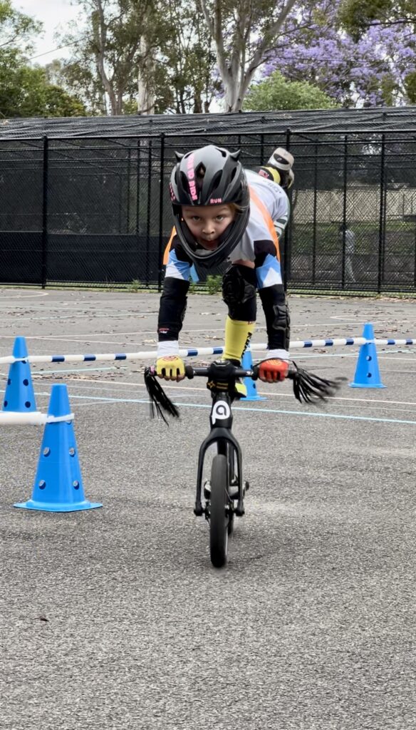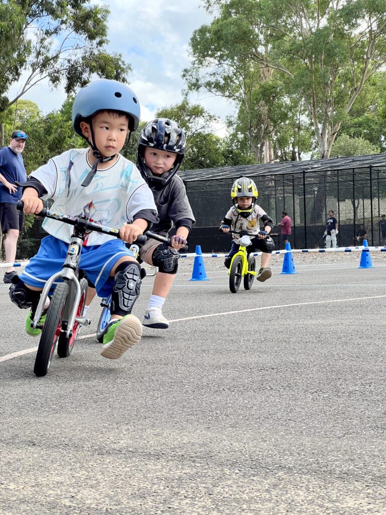 “Ready to Ride with Purpose”. For experienced riders who are confident on their bike and ready for more technical skills, strategy, and fun challenges. Goals: • Master start gate techniques • Balance while gliding at speed • Corner with control • Develop racing instincts and spatial awareness Activities include: • Time trials and mini races • Riding over ramps and around tighter turns • “Mission Impossible” obstacle courses • Reaction-based start and stop games Benefits: • Enhances motor skills and decision-making • Builds a strong foundation for pedal bike transition • Encourages discipline and self-confidence under gentle pressure